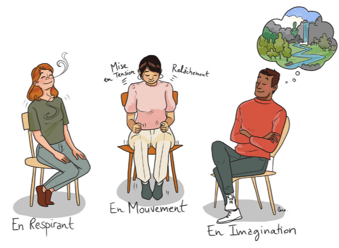 Elle associe des techniques de relaxation, de respiration et de visualisation positive.